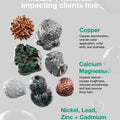 كوكتيل الاستخلاب: مزيج فريد من 5 عوامل استخلاب مع مجموعة من عوامل الجذب المعدنية ثبت سريريًا أنه يقلل من 7 من المعادن الأكثر شيوعًا من الشعر: الكالسيوم والمغنيسيوم والنحاس والزنك والنيكل والكادميوم والرصاص.