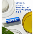 NIVEA Original Care lip balm deeply hydrates your lips for 24 hours to keep them beautifully smooth and supple all day, protecting them from drying out. The unique, new and improved formula is made with 100% natural origin ingredients including ethically sourced Shea Butter. It is also enriched with natural oils enriched with vitamins whilst being mineral oil free. This lip balm will keep your lips beautifully smooth all day, every day. The unique formula has a pleasantly smooth texture that instantly melts into your lips and keeps them moisturised. Enjoy natural, healthy looking and soft kissable lips all day! Skin compatibility dermatologically approved